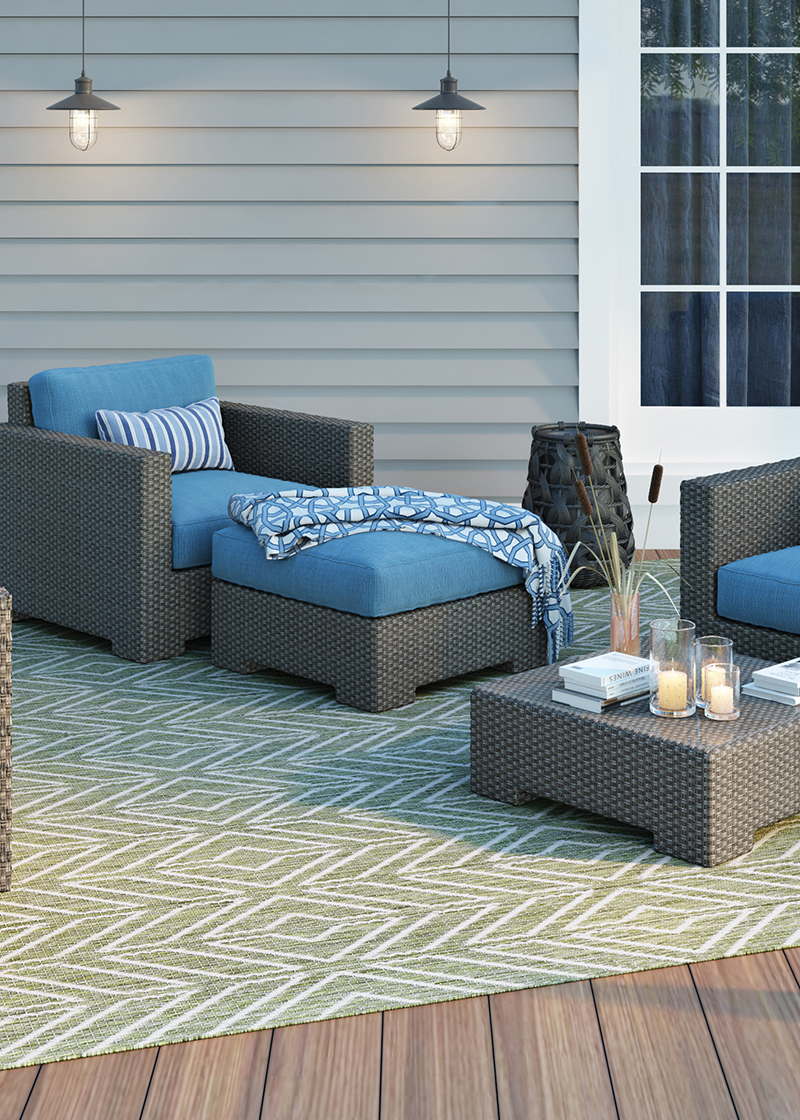 These weather-defying area rugs are suitable for indoor and outdoor use. You’ll love the way they color-coordinate with today’s most popular outdoor furniture pieces. The collection’s naturally inspired color palette will provide a warmer and more inviting appearance for patio decks and stone entryways.